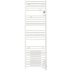 Boîtier de commande digital à hauteur avec 2 fonctions programmables pour chauffer la pièce et sécher les serviettes. Affichage de l’heure en permanence. Une sensation rapide de chaleur grâce à la fonction Boost. 2 patères boutons amovibles (fournies)