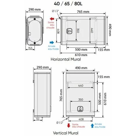 - Compatible avec des baignoires de volume d’eau chaude jusqu’à 140 litres (pour les modèles 100, 120 et 150 litres)Â