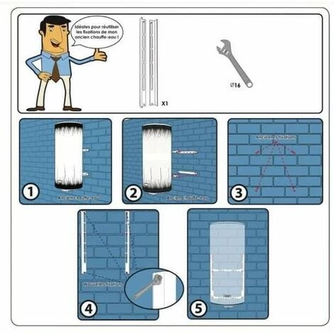 Possibilité de réutiliser les anciennes fixations des chauffe-eau de toutes marques sans trous suplémentaires.