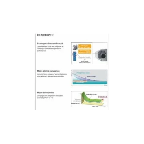 - Confort : – Montée rapide en température (en mode pleine puissance)